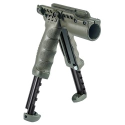 Handguard Mounted VFGAmbidextrous, overmolded rubber, handguard mounted, vertical forward grip with capped storage compartment.Features:- An overmolded rubber grip attached to durable anodized base with steel bolt - The threaded cap seals the storage area, each comes with a foam insert - Attaches to all standard plastic handguards Color: Black