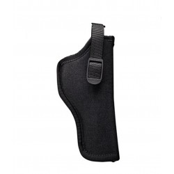 Hip Nylon Belt Holster -BlackHawk Holster- Type: Hip Color: Black- Right HandFeatures:- Ultra-thin, three-layer nylon laminate provides comfortable next-to-skin wear- Smooth nylon lining for easy draw- Adjustable retention strap with non-glare snapsSizing:- 17: 10 1/2 Barrel .22 autos, tie-down loop included