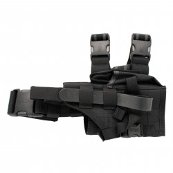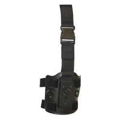 Universal Drop Leg Right Handed, Polymer/Nylon, BlackConvert any Bulldog polymer belt holster to a tactical holster with this universal drop leg platform. It is constructed of polymer with heavy duty nylon webbing for maximum comfort and flexibility. The drop strap has a quick release buckle and mounts to any belt up to two inches with a non-slip Velcro...