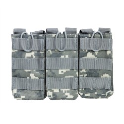 AR Triple Mag PouchNcStar AR Triple Mag PouchAR Triple Mag Pouch - Digital CamoFeatures:- Holds 3 AR Style 5.56/223 or 7.62x39 Magazines- Adjustable Bungee Style Retentions Straps make Access to your Magazines easy while securely holding them in place.- PALS Webbing on Front to Stack Additional Pouches or Accessories.- PALS Straps to attach it to your...