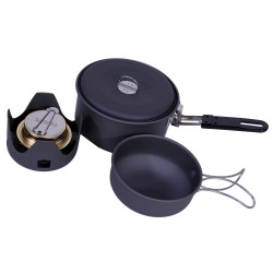CookwareThe NDuR Mini Cookware Kit w/Alcohol Burner is a great little kit when you are on the go. Made of Anodized Aluminum, it is extremely lightweight and easy to clean. It comes with a mesh carrying pouch. The surface treatment is FDA and LFGB food safety approved.Features:- Made of Hard Anodized Aluminum- Quickly and Evenly Heats- Abrasion and...