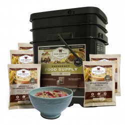 Grab and Go BucketThis bucket includes 120 servings of breakfast survival foods. No entrees.Included in this kit:- 5 pouches of Strawberry Granola Crunch (20 Servings)- 5 pouches of Brown Sugar and Maple Multi-Grain Cereal (40 Servings)- 5 pouches of Crunchy Granola (20 Servings)- 5 pouches of Apple Cinnamon Cereal (40 Servings)Features:- Includes 1 total...
