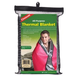 Emergency BlanketA compact, lightweight blanket made from aluminized, non-stretch polyester. Stays flexible in freezing temperatures. Reflects body heat back to body. Wind and waterproof. Also known as a survival blanket, space blanket, first aid blanket, thermal blanket or all weather blanket, The Coghlan's emergency blanket is essential survival gear...