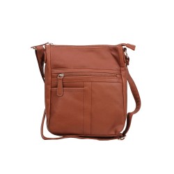 Daisy Crossbody SatchelCross body Bag with laser cut Daisies - Brown, CCW handbag with multiple compartments to secure the included universal holster.Faux leather cross body purse featuring a laser cut daisies front pocket with magnetic snap-button closure for the top compartment.The primary CCW compartment is located on the back side of the purse with...