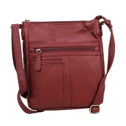 Daisy Crossbody SatchelCross body Bag with laser cut Daisies - Burgundy, CCW handbag with multiple compartments to secure the included universal holster.Faux leather cross body purse featuring a laser cut daisies front pocket with magnetic snap-button closure for the top compartment.The primary CCW compartment is located on the back side of the purse with...