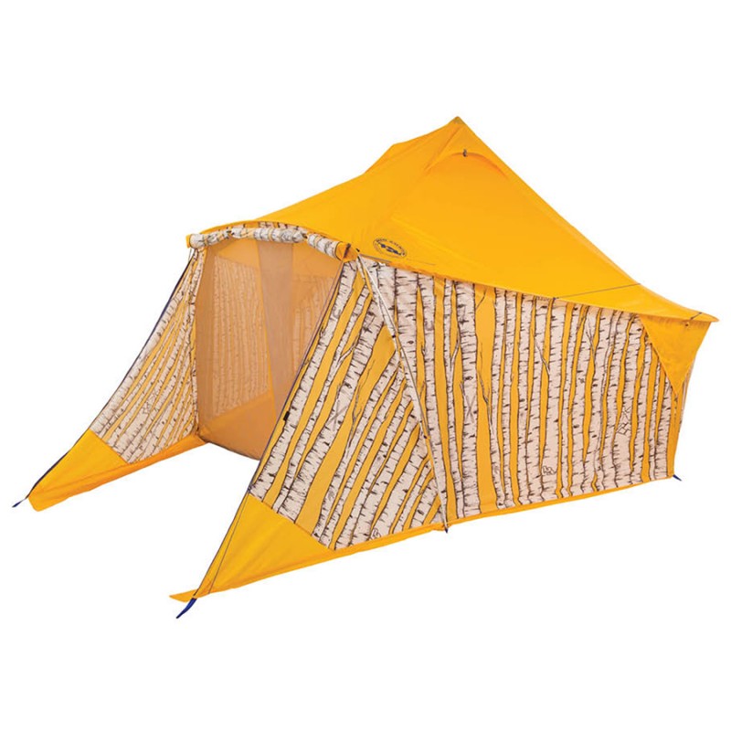 This unique yurt style tent provides the perfect establishment for festivals, car camping, or base camps. The first Big Agnes tent to feature custom Aspen print, this watering hole stands out from the crowd and is easily recognizable as the place to be. Relax with plenty of room in this single wall shelter, offering peaked vents and large side wall windows that allow for good airflow and ventilation. Lounge easy as you gaze out the large back window or through the expansive vestibule that can be staked out for shade, or zipped shut for full protect from the elements.