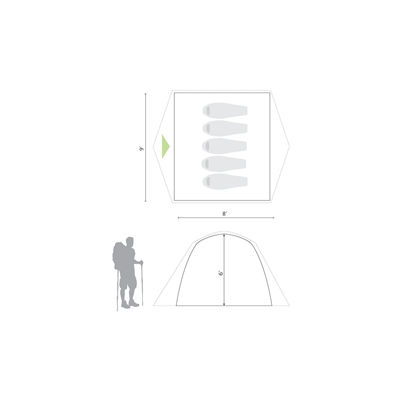 - Two pole rectangular tent with easy-to-set-up clip-sleeve pole system