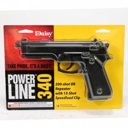Powerline Air PistolThe PowerLine 340 BB pistol is a spring-air pistol that features a 200-shot BB reservoir with a 13-shot Speedload Clip. The removable Speedload Clip is located in the grip. Once the reservoir is loaded with 200 BBs, you just pull the Speedload Clip tab all the way out, shake the pistol and push the tab back in to reload the Speedload...