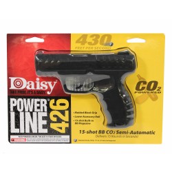 Powerline Air PistolThe Daisy 426 CO2 BB Air Pistol shoots 15 BBs as fast as you can pull the trigger before having to reload. Powered by a 12-gram CO2 cartridge (not included), the Daisy 426 shoots .177 BBs at 430 fps. Reloading the 426 Pistol is easy by means of a built-in magazine, and the CO2 cartridge is quickly replaced into the grip. The 426...