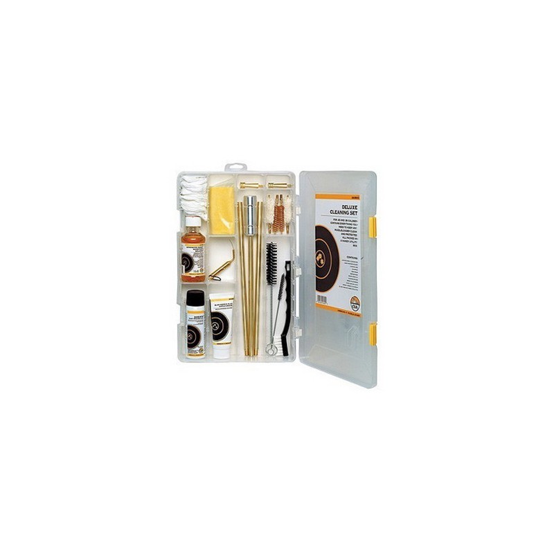 The CVA Deluxe Cleaning Kit contains everything you will need to keep your muzzleloader clean and shooting great. This kit includes cleaning tools to effectively maintain both .45 and .50 caliber muzzle loaders, and comes completely contained in a hard plastic carrying case.