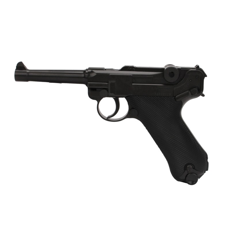 This BB replica of the famous German sidearm is very detailed right down to the detailing on the safety. It is a CO2 (housed in the grip) powered semi-automatic with a 21 round drop free magazine. Features all metal parts.