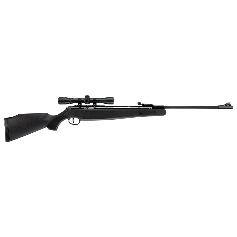 The Ruger Air Magnum Break Barrel Pellet Rifle is a 1200 FPS pellet rifle with an included 4x32 Scope. The spring piston break-barrel rifle is durable with its built in all weather composite stock. The 1200 FPS (feet per second) that is attained is high for this class of spring piston break-barrel rifle. The Air Magnum features a blued barrel and receiver and a rifled all steel barrel. The adjustable fiber optic rear sight allows for easy sighting adjustments and the fixed fiber optic front sight allows for quick focusing on the intended target. An automatic safety, rubber recoil pad for comfort, and adjustable trigger are all features of this quality gun.