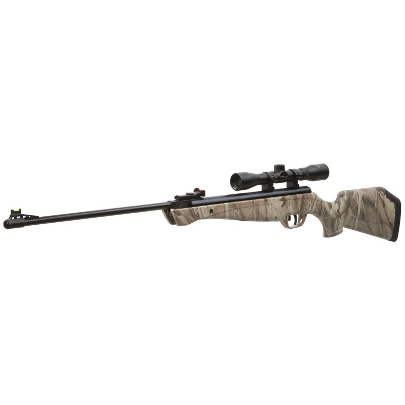 The Crosman Stealth is a top-tier air rifle sporting Nitro Piston technology and a lightweight synthetic stock. This rifle is capable of velocities between 1000 to 1200 FPS depending on the type of pellets used. Features also include two-stage adjustable trigger and CenterPoint 4x32mm scope with dovetail mounts.