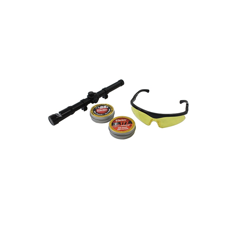 The Daisy Powerline 880 Air Rifle Shadow Kit is dependable, easy-to-use multi-pump pneumatic air rifle. It is perfect for hours of shooting fun. The 880 Kit features synthetic wood grain Monte Carlo stock, 4x15mm scope, Shooting Glasses, 750 BBs and 500 Pellets. Everything you need to get started shooting. The 880 air rifle will shoot BBs or pellets.