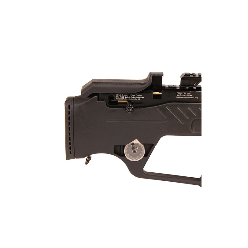 The Hatsan Barrage Semi-Auto PCP Air Rifle is a semi auto action pre-charged pneumatic (PCP) air rifle. It features a fully shrouded, precision rifled and choke barrel for accuracy as well as a 500cc volume air bottle mounted to the firearm, and a built-in pressure gauge to monitor the cylinder pressure. The patented anti-knock system prevents discharge of the rifle when rifle is knocked or bounced and the comb is easily adjustable for elevation along with an adjustable rubber butt pad. The Hatsan Barrage explores a modern tactical look while offering excellent features capable of handling almost any situation. The Hatsan Barrage is a superior choice.