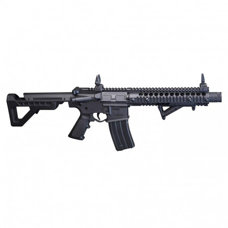 The DPMS SBR Full Auto CO2 Air rifle is full of action. This air rifle is able to shoot in semi-automatic mode as well as full-automatic. It also has the capability to mount all your favorite accessories on its quad rail.