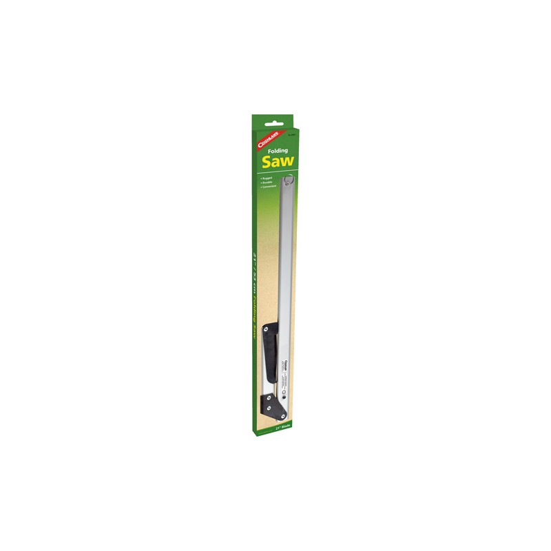 Take along the Coghlan's Folding Saw the next time you go camping. It offers rugged construction, made with an anodized aluminum frame. One added feature is that this compact saw is capable of holding extra blades. You can carry various blades for wood and meat cutting. The hunting saw measures a standard 21". It weighs only 16 oz, so it helps keep your pack lighter on hiking trips. Fitted with a ring for easy hanging or attaching to other equipment during transport.