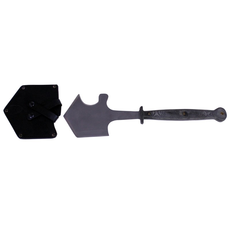 A very original design by Mykel Hawke, the HASP has been created to serve four purposes in one tool. It's a hatchet, an axe, a shovel, and a pick. It's constructed of high carbon steel and boasts a handle made of super-strength micarta. The cross-cross sheath constructed of leather ensures stability when attached to your pack or your body.