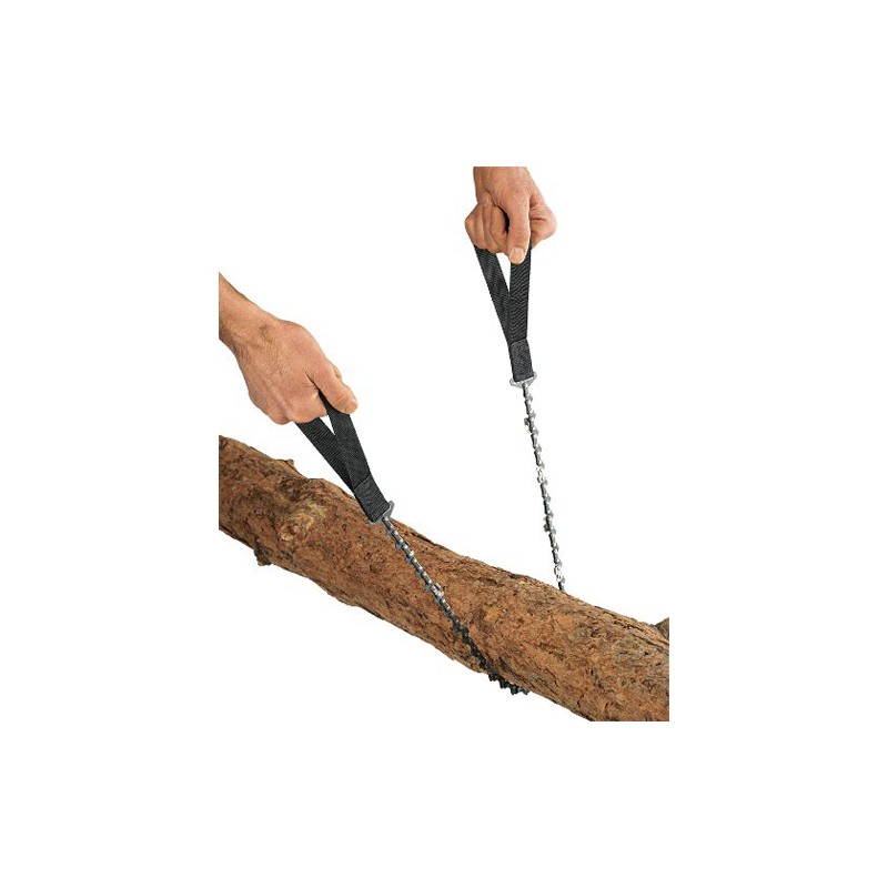 The heavy-duty, pocketable SaberCut Chainsaw with Pouch uses a flexible, bi-directional 24-inch blade to easily saw through tree limbs and branches and cut at a variety of angles with little clearance. A great tool for backcountry travel, ultralight backpacking, and emergency preparedness, lightweight SaberCut Chainsaw features comfortable wrist straps for less stress on your hands, and you can extend your reach by adding extra cordage to each handle (rope not included).