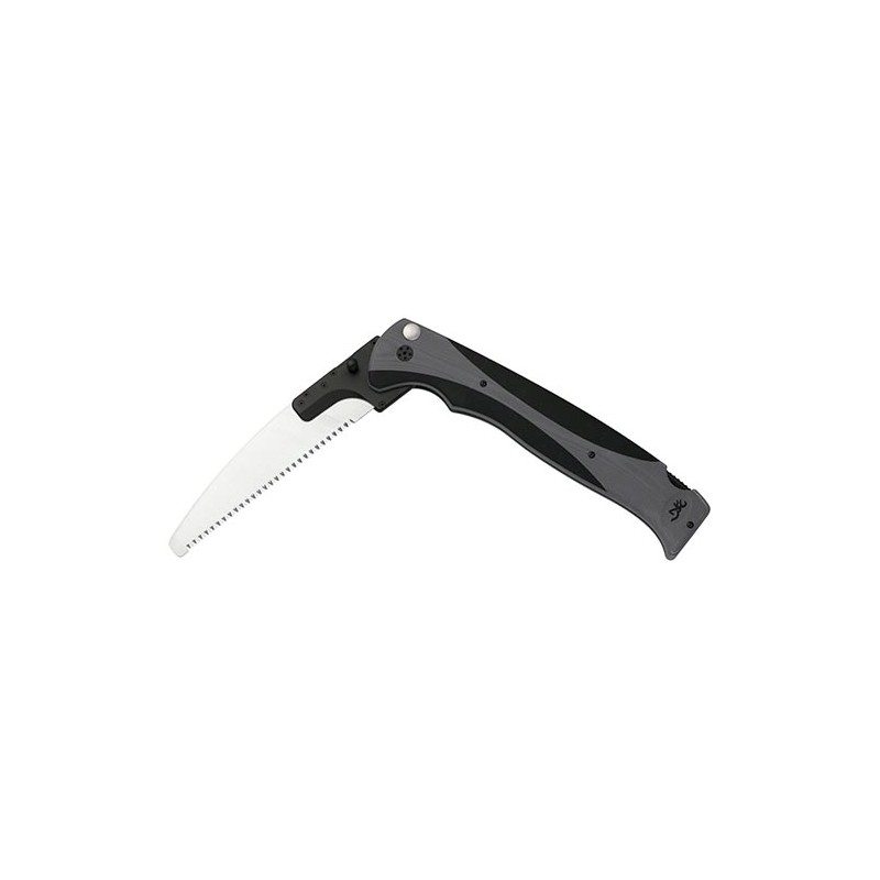 Saw away. This folding camp and big game saw comes with 2 replaceable blades. Both saw blades are push/pull SK5 high carbon steel. Cut limbs for your treestand or blind. Build things around camp. Clear areas for your trail cams. This is The injection molded polymer handle is molded for gripping, with a push button lock and release. A locking wood screw in the base allows you to use this versatile tool as a pole saw.