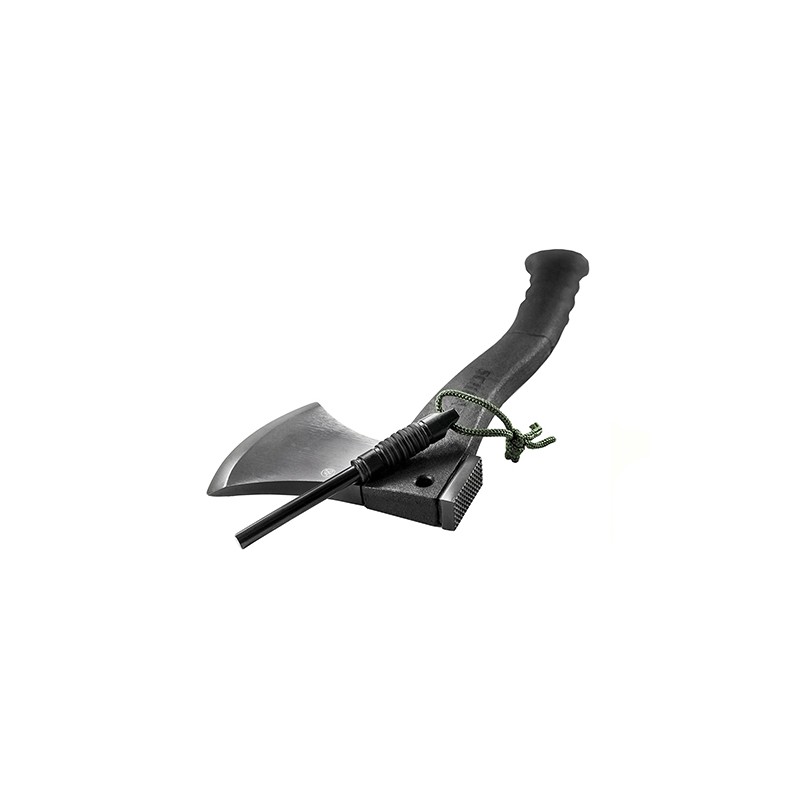 The Extreme Survival Axe is 11.8" overall making for a good sized survival tool with enough weight to get the job done. The axe contains a Ferro fire steel rod hidden in the handle so you always have a good tool to throw out a large amount of sparks.