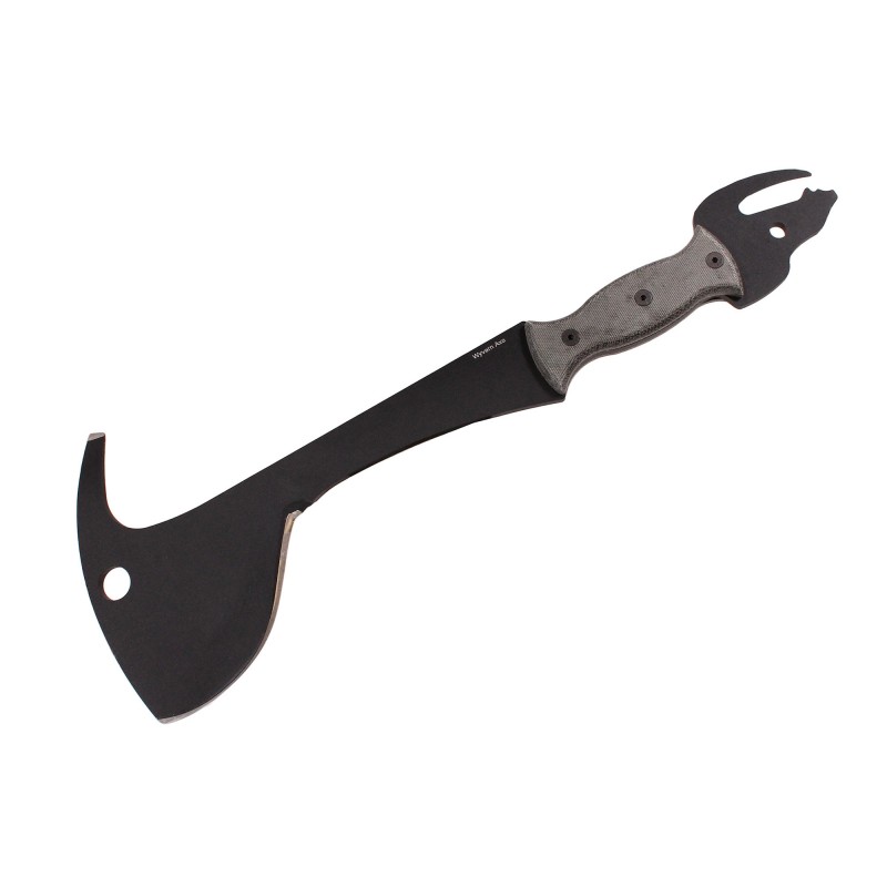 The Wyvern Axe is a military grade tool that is proficient during emergency egress situations or to make short work of clearing a line of small trees, debris, and wreckage. At 18.9 inches long and weighing 2 and a half pounds, conventional axes with simple design and a single task personality fall short in comparison. From across the sea in unforgiving military conditions, to the rapid response of being first on scene and even huddled around a warm fire the incredibly rugged, multi-dimensional Ontario Knife Wyvern Axe beckons to be summoned.