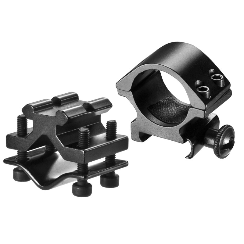 Shotgun Ring Mount by Barska. The barrel clamp will attach to most any rifle barrel. The 1 ring features a picatinny style base. Quickly attaches and detaches from the rail with a large thumb screw.