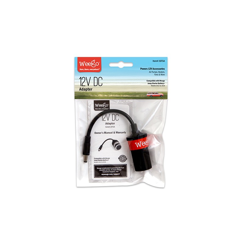 12V DC Adapter allows you to bring portable power to the campsite, dock, on board your boat, or on the road. Its an essential accessory to Weego Jump Starter Battery+. Just connect the 12V DC Adapter to your Weego Jump Starter Battery+ 12V output and any 12V DC plug on air compressors, heaters, fans, camping appliances, lanterns, and more for instant power.