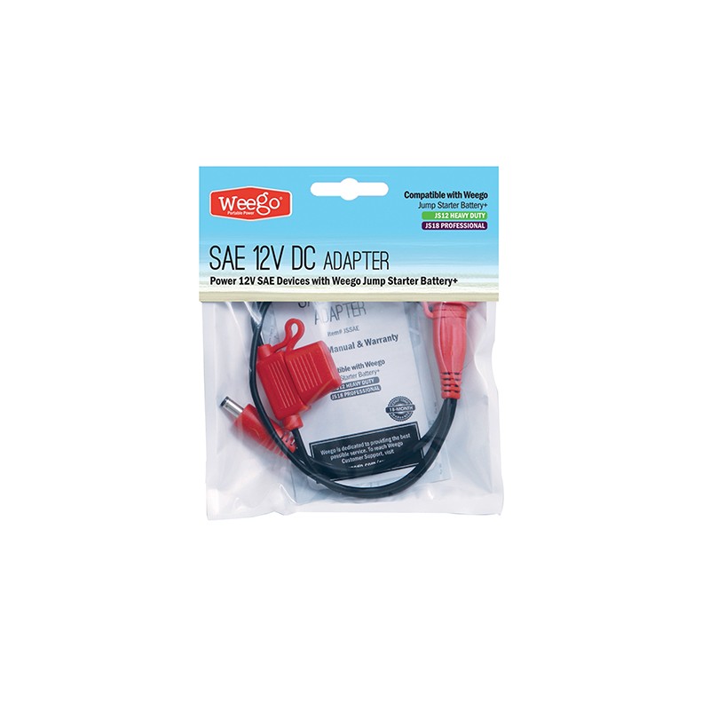 SAE 12V DC Adapter connects to your Weego Jump Starter to power a variety of 12V devices including air compressors, auto fans & fish finders, and test trailer lights.