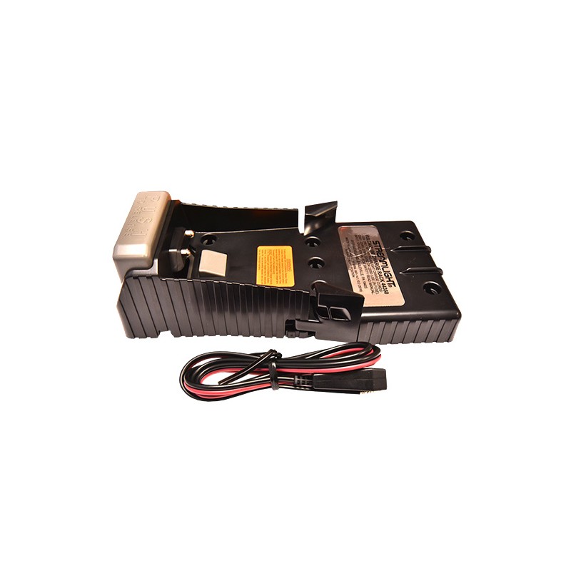 This Charging Rack for the Vulcan 180 easily mounts to a wall or in your vehicle for convenient charging of your flashlight. DC cord is wired into rack.
