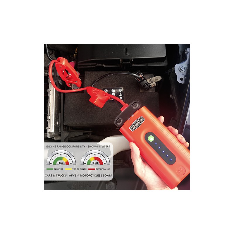 Weego is the safest, easiest and most reliable portable lithium ion jump starter for cars, trucks, boats, motorcycles, ATV/UTVs, and more. The Improved Weego 44 Jump Starting Power Pack, Weego's most popular high-performance model, quickly and easily jump starts 7L+ gas and 3.5L+ diesel engines. And fits in the palm of your hand. It is guaranteed to provide power - 2100 peak amps and now with 440 cranking amps - when you need it most. Our power output is verified and independently lab tested so you know that you are getting what you paid for.