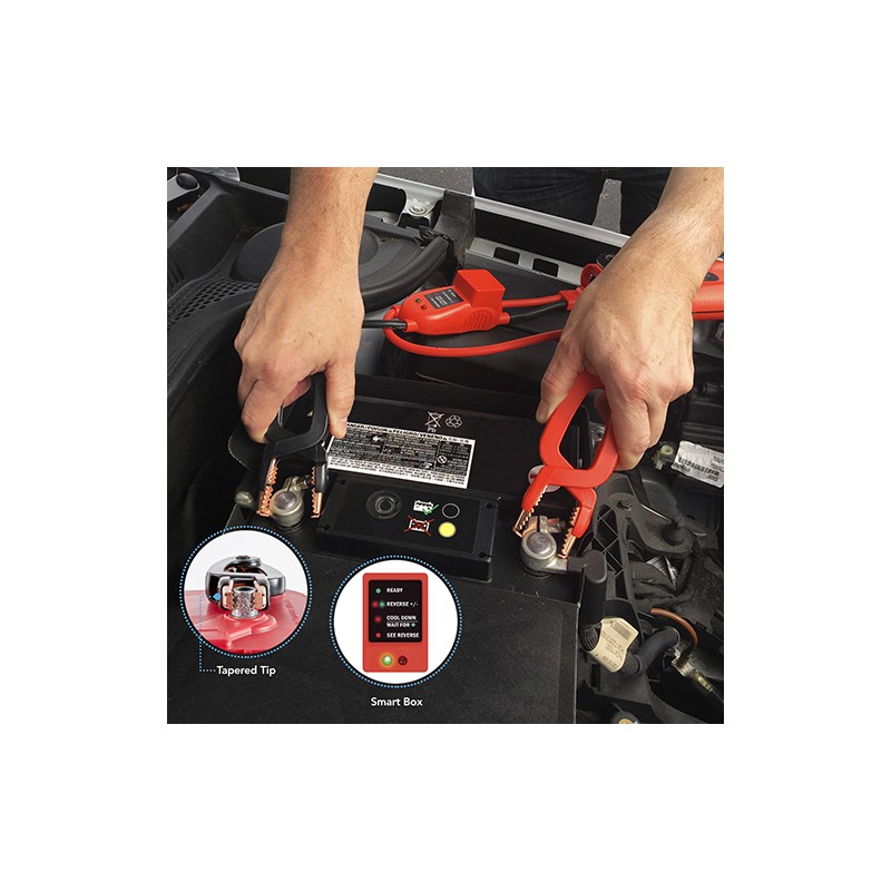 - Patented Smarty Clamps with tapered tips have safety protections built in plus lights and sounds to guide you through a safe and simple jump
