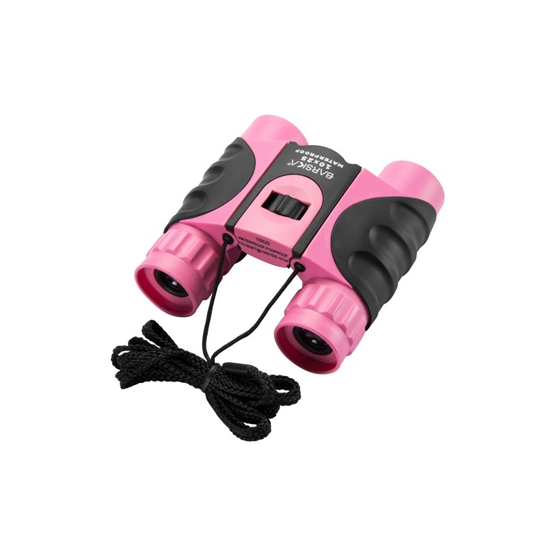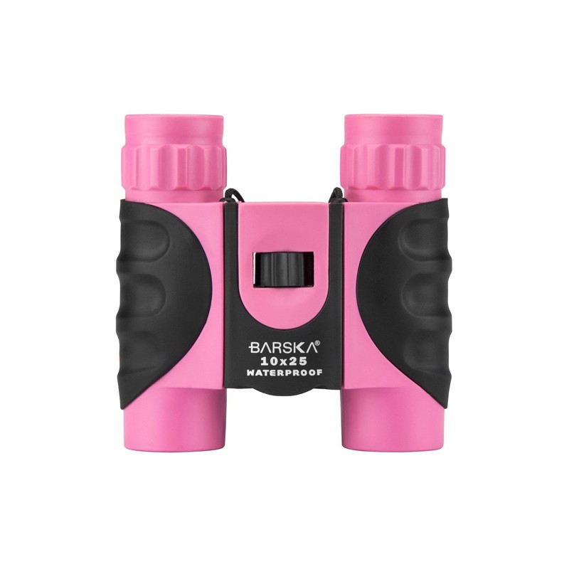 The 10x25 Waterproof Pink Binoculars from Barska are a waterproof yet cost-effective handheld optic useful for a wide range of outdoor activities. The fixed 10x magnification is ideal for mid-range bird watching, hiking, and sightseeing. The lightweight construction ensures that this set will not strain your neck after a long day of use. Fully coated optics transmit bright clear images throughout the entire focus range, and the rubber armored housing helps protect your optics from moisture and light shock.