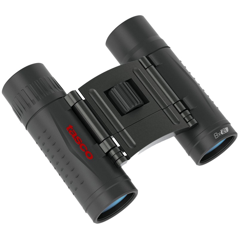 Tasco's compact 8x21 Essentials Compact Binocular, offered here in black, is an ideal instrument that brings the action up-close without taking up a lot of room or adding excessive weight. Anti-reflection fully multi-coated optics maximize the light coming into the 21mm objectives while minimizing light loss. A dual-hinge design enables the optical tubes to be folded tightly under the bridge for an ultra-compact form factor that allows them to fit easily into a pack, coat pocket, or glove compartment.