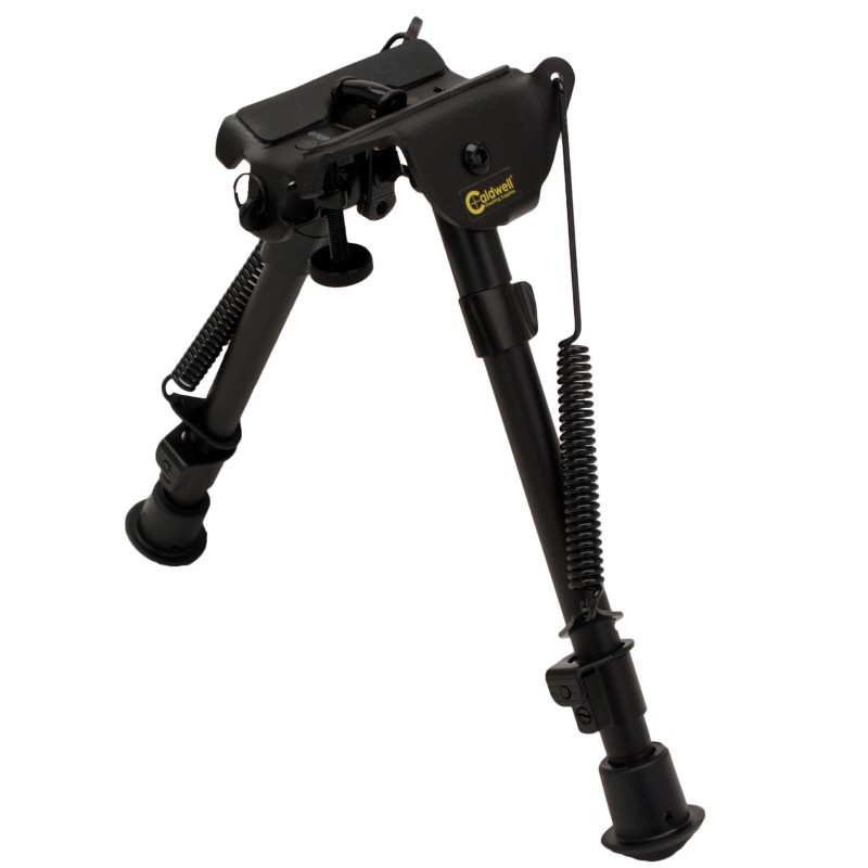 The Caldwell XLA Bipods provide a stable shooting support that conveniently attaches to almost any firearm with a sling swivel stud. The lightweight aluminum design adds minimal weight and deploys quickly, with legs that instantly spring out to the shooting position with the touch of a button. The legs are notched for easy indexing to a specific height. There is a connection point for sling attachment and multi section legs that collapses forward allowing for convenient carry of the firearm. Soft rubber feet provide enhanced stability, while the padded bipod base protects the firearm's forend.