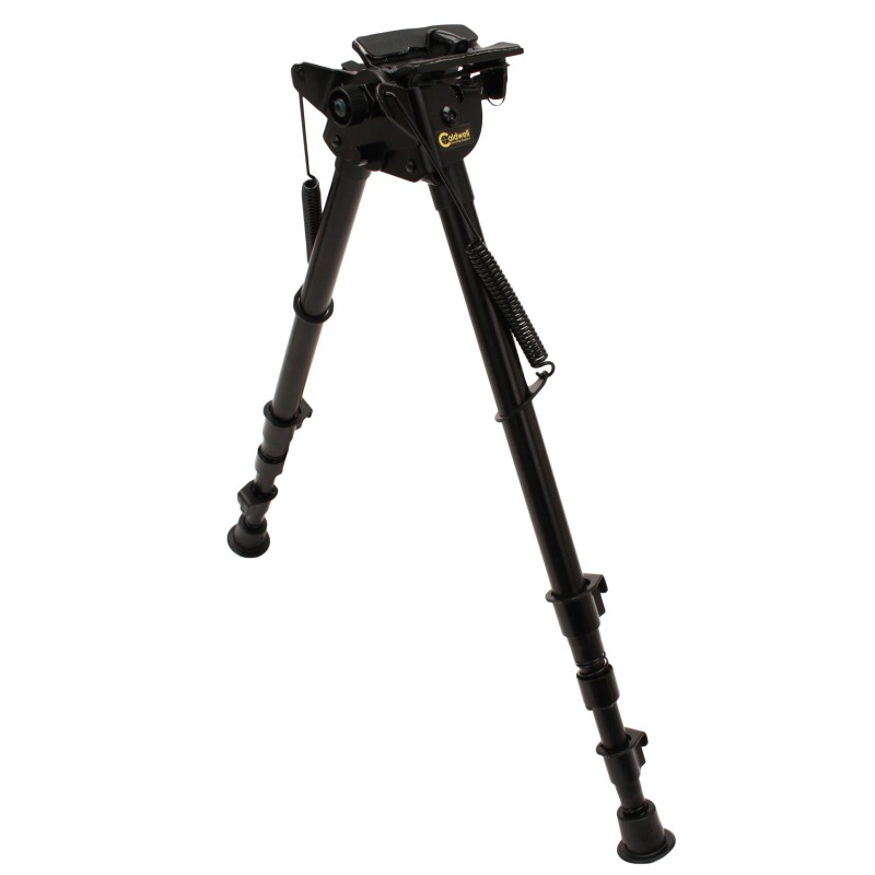 The Caldwell XLA Bipods provide a stable shooting support that conveniently attaches to almost any firearm with a sling swivel stud. The lightweight aluminum design adds minimal weight and deploys quickly, with legs that instantly spring out to the shooting position with the touch of a button. The legs are notched for easy indexing to a specific height. There is a connection point for sling attachment and multi section legs that collapses forward allowing for convenient carry of the firearm. Soft rubber feet provide enhanced stability, while the padded bipod base protects the firearm's forend. In the real world of hunting, the chances of the ideal shot opportunity occurring while on a level ground are slim-to-none. A pivoting bipod will allow the shooter to compensate for ground that is unlevel by up to 20 degrees. The lower portion of the bipod pivots independently from the upper stock mount, allowing the firearm to be quickly leveled on uneven ground. The tension knob can be adjusted to control the resistance of the pivoting motion.