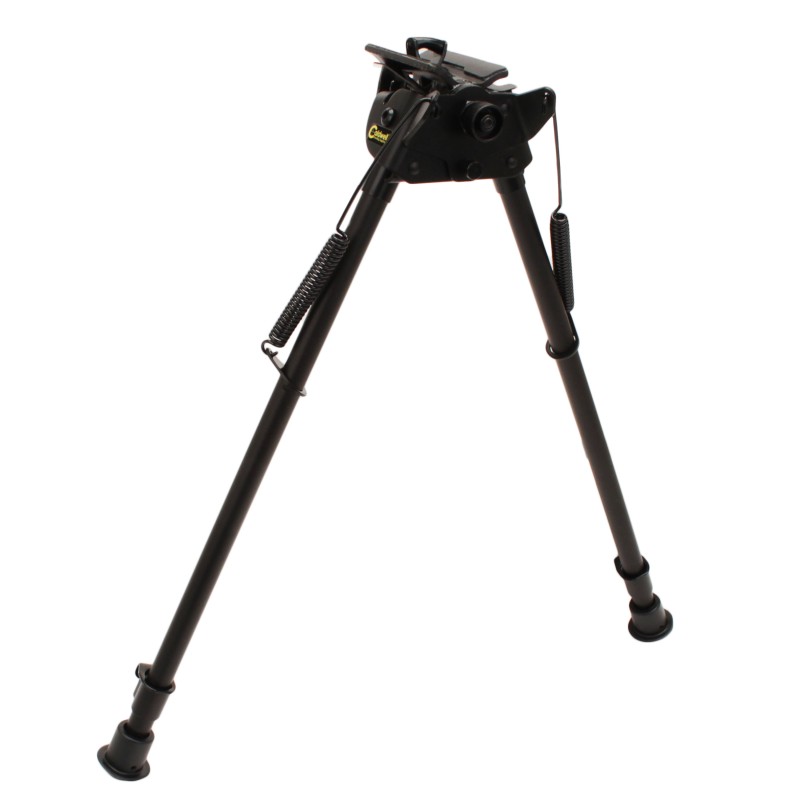 The Caldwell XLA Bipods provide a stable shooting support that conveniently attaches to almost any firearm with a sling swivel stud. The lightweight aluminum design adds minimal weight and deploys quickly, with legs that instantly spring out to the shooting position with the touch of a button. The legs are notched for easy indexing to a specific height. There is a connection point for sling attachment and multi section legs that collapses forward allowing for convenient carry of the firearm. Soft rubber feet provide enhanced stability, while the padded bipod base protects the firearm's forend. In the real world of hunting, the chances of the ideal shot opportunity occurring while on a level ground are slim-to-none. A pivoting bipod will allow the shooter to compensate for ground that is unlevel by up to 20 degrees. The lower portion of the bipod pivots independently from the upper stock mount, allowing the firearm to be quickly leveled on uneven ground. The tension knob can be adjusted to control the resistance of the pivoting motion.