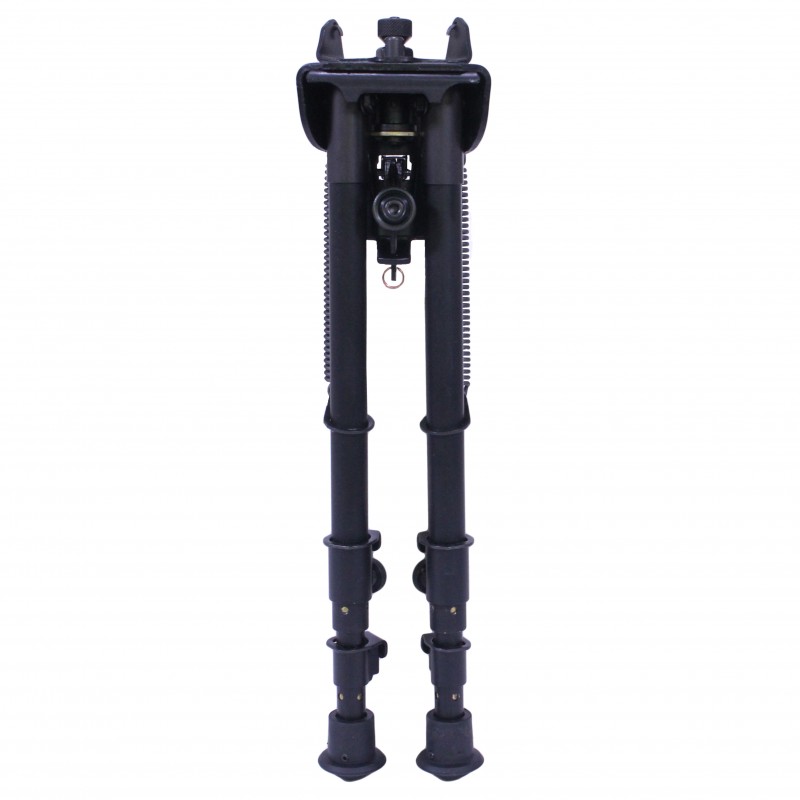 Ultra-light Harris Bipods are lightning quick and manufactured with quality heat treated steel and hard alloys. The bipods are quick-detachable and clamp to the Q.D. stud of bolt action rifles with conventional stock design. Carrying your rifle with a sling or shooting off-hand is not impeded by the use of a Harris Bipod. Series S Bipods rotate to either side for instant leveling on uneven ground. Hinged bases have tension adjustment to eliminate tremor. Bipods have an all-weather black anodized finish.