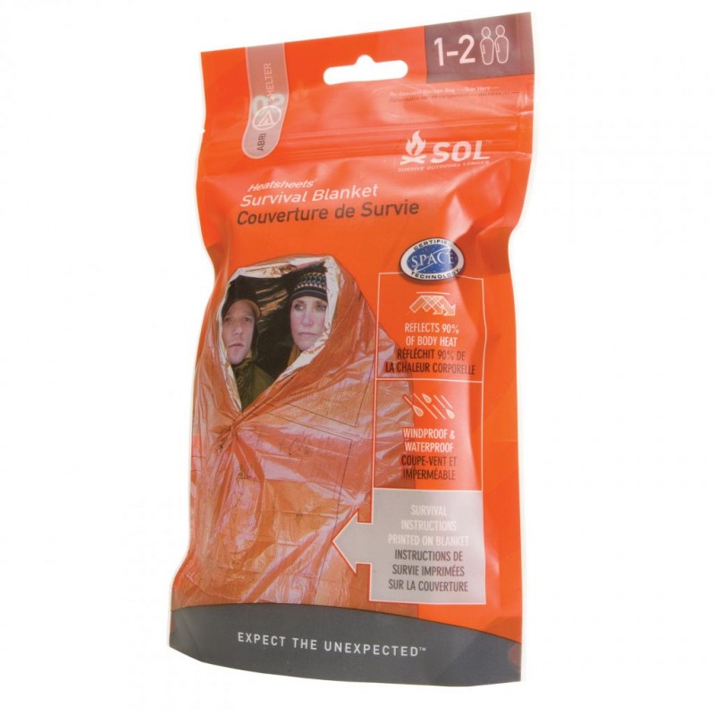 The most advanced emergency blanket on the market - meticulously designed never to fail when you're counting on it with your life. It all starts with the material - vacuum-metalized polyethylene reflects 90% of your body heat while also offering a number of other important features that set it apart from traditional mylar blankets: it opens easily and will not shred if nicked or punctured, rips and tears can be repaired, it is quiet and won't crinkle in high winds, and its high-visibility orange exterior makes it easy for rescuers to find you. Sized to fit one to two people.