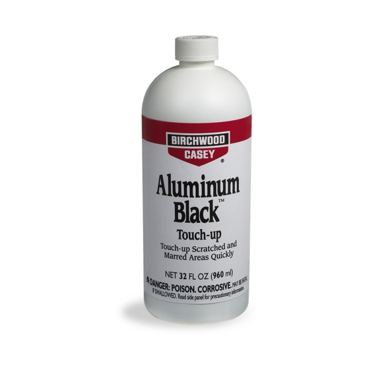 The room temperature chemical used by gunsmiths and industry to blacken aluminum parts. Restores scratched and marred areas quickly. Fast-acting liquid is easy to apply with no dimensional change. Color will vary from deep gray to black depending on alloy. Aluminum Black Metal Finish is also excellent for blackening name plates, plaques, trophies and other engraved items.
