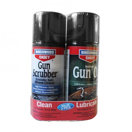 Cleaning and lubricating your firearm just got a whole lot easier thanks to Birchwood Casey's Gun Scrubber and Synthetic Gun Oil 2-pack. Gun Scrubber Firearm Cleaner cleans deep and evaporates fast.