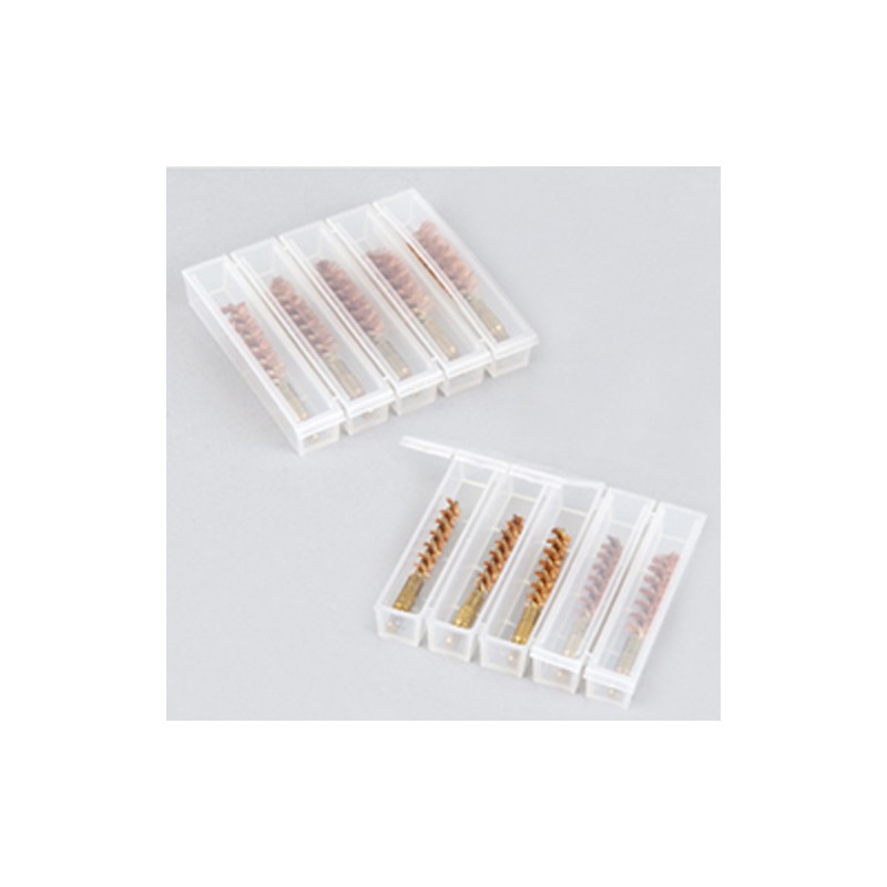 You will find that the brushes produced by Otis will give you many times the life of most brushes. This is due to the superior construction and engineered features incorporated into the brush, such as a precision thread with no weak undercut. These brushes have a Tufcor proprietary core wire that is corrosive resistant, has a tighter twist for better bristle retention, and can be used with all firearm cleaning chemicals. Otis premium bore brushes also have twice the fill as other brushes, the stem is cold welded to the core, and the brushes are filled to the end. Each brush features the size stamped on the stem and color-coded core wire to easily identify the brush size; this means that you will never clean your gun with the wrong brush. The rifle bulk brushes come in a reusable snap-pack case.