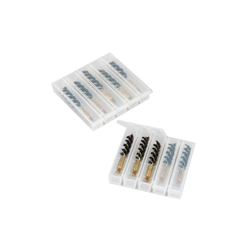 You will find that the brushes produced by Otis will give you many times the life of most brushes. This is due to the superior construction and engineered features incorporated into the brush, such as a precision thread with no weak undercut. These brushes have a Tufcor proprietary core wire that is corrosive resistant, has a tighter twist for better bristle retention, and can be used with all firearm cleaning chemicals. Otis premium bore brushes also have twice the fill as other brushes, the stem is cold welded to the core, and the brushes are filled to the end. Each brush features the size stamped on the stem and color-coded core wire to easily identify the brush size this means that you will never clean your gun with the wrong brush. The rifle bulk brushes come in a reusable snap-pack case.