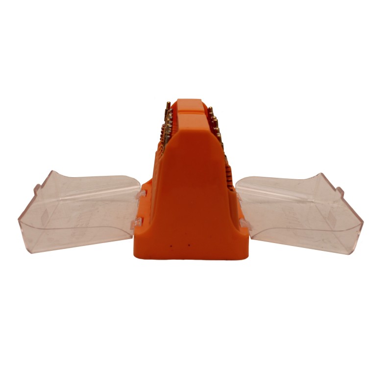 The hinged covers of the Lyman Jag and Brush Gun Cleaning Kit are see-through and have slots that are clearly marked for quick selection. All jags and brushes use standard 8-32 thread except the .17 caliber which uses a 5-40 thread.