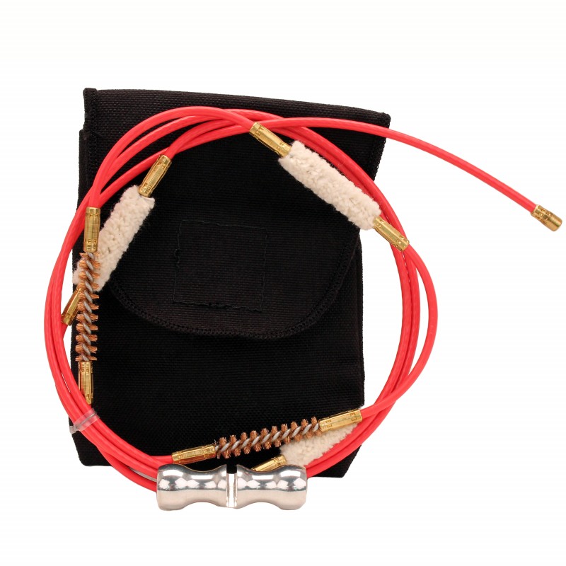 Every aspect of this multi-stage system has been optimized for performance. The core of the system is a premium brush and mop combination, equal in quality to the finest rod-mounted cleaners. A nylon coated aircraft cable and non-corrosive brass connectors secure the system, providing maximum strength. Operated with an ergonomic, quick disconnect handle, the EZ Clean offers simplicity, strength and quality for the long term. Packaged complete in it's own instantly accessible case, the EZ Clean is designed for military applications where it's speed, strength and reliability can save a life. Every caliber is color-coded for firearm type.