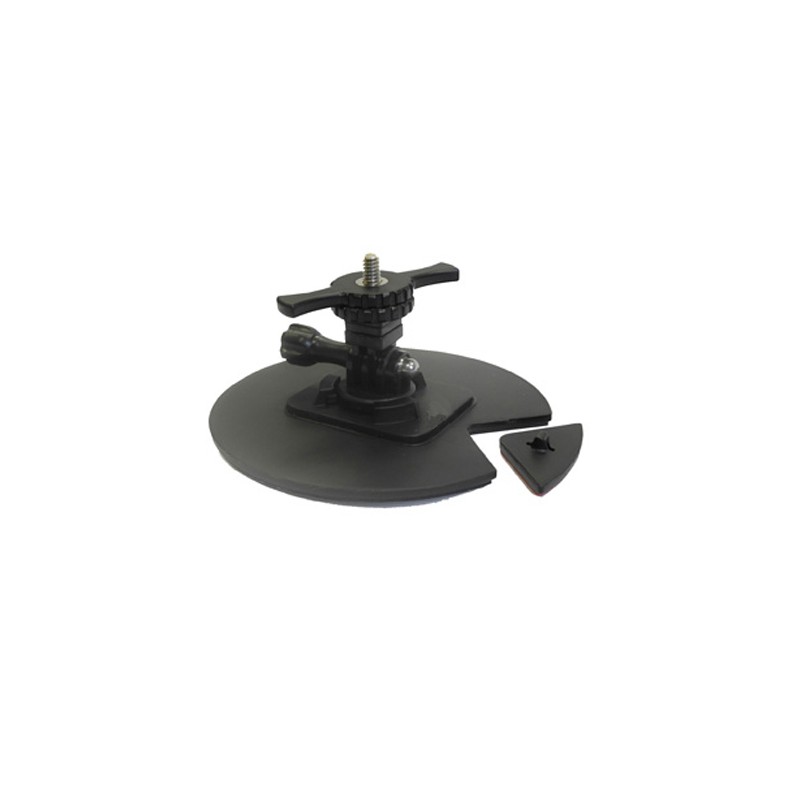 Secure adhesive mounting plate with leash attachment. Quick Release Pivot Post with Secure Lok for adjustable view angles. Universal mounting system is compatible with standard tripod mounts found on most cameras and also cameras with GoPro style mount.
