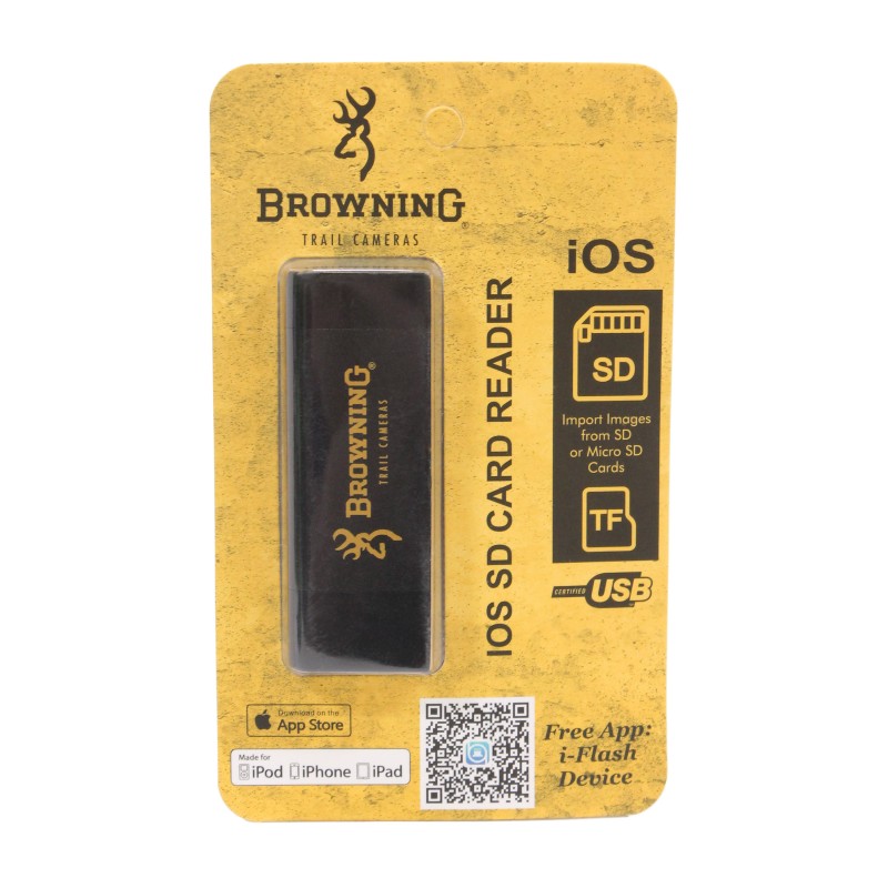 Save yourself the time and trouble of bringing trail camera memory cards home and viewing them on your computer with the Browning Trail Camera SD Card Reader for iOS. Simply visit your camera in the field, pull the memory card and insert it in the reader, then connect the reader to your iOS phone or device to see the images and video you've collected.