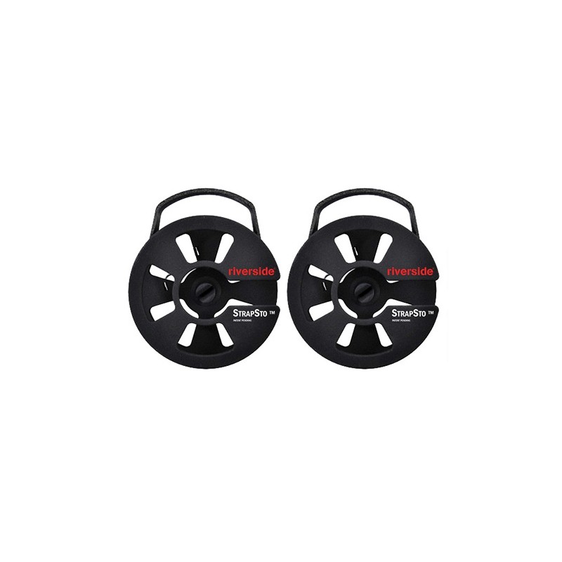 StrapSto Cam Strap Reel provides a quick and easy solution for cam strap organization. Simply attach your strap and reel it up! StrapSto will fit cam straps up to 1ft in length. Use the detachable handle easy reeling and for hanging it up. This version includes two StrapSto Cam Strap Reels. It is also sold individually and with a 15 red Riverside heavy-duty utility strap