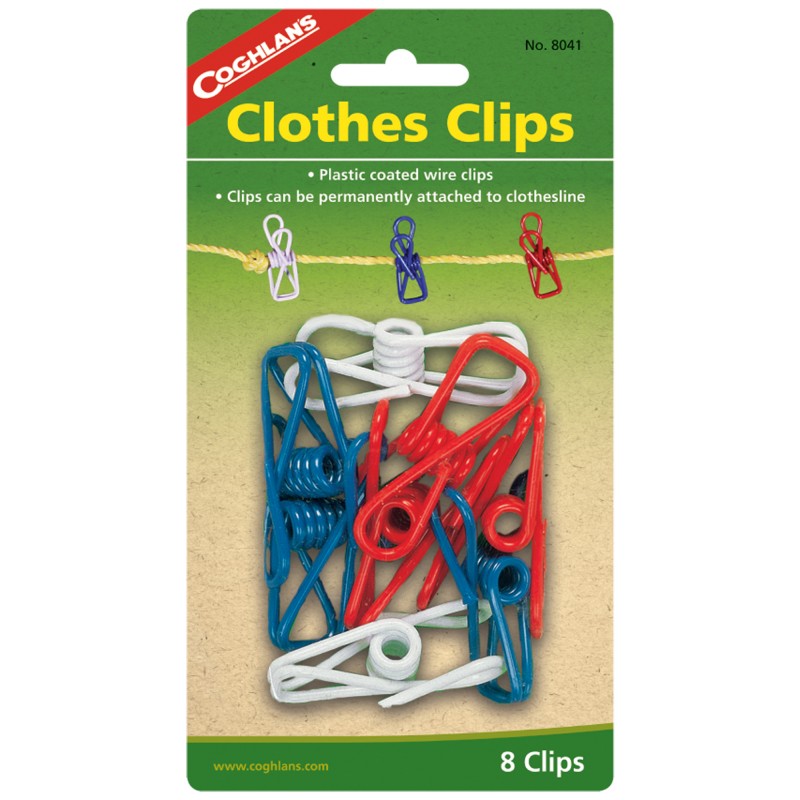 Colorful plastic coated wire clips that are strong and will not bend or break. Unique design allows clips to be permanently attached to clothesline.