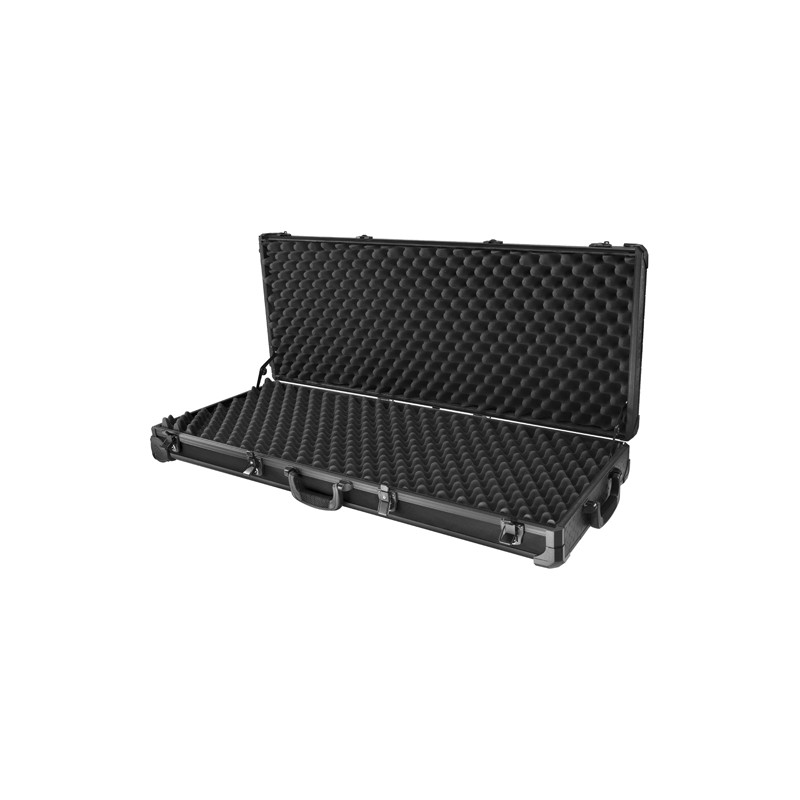 The Loaded Gear AX-100 hard rifle case is designed to carry up-to 34inch long rifles. This protective hard travel container features two crushproof handles and two built-in solid wheels for transport. With both two point key latch locks and two-point padlock adaptable fittings this case offers above standard security protection. At a internal width of 14.25 inches this case can easily fit two standard rifles. The rigid aluminum case frame offers added reinforcement to the exterior of this protective rifle case. The Loaded Gear AX-100 rifle case includes two layers of egg crate padding and pre-perforated cubed foam. The cubed foam allows the user to easily customize the foam to the shape of the rifle so that is does move around during transport. The interior of the case is also lined with shock absorbing foam liner. Built in to the rifle case are interior locking hinges to ensure that the case stays open for easier access.
